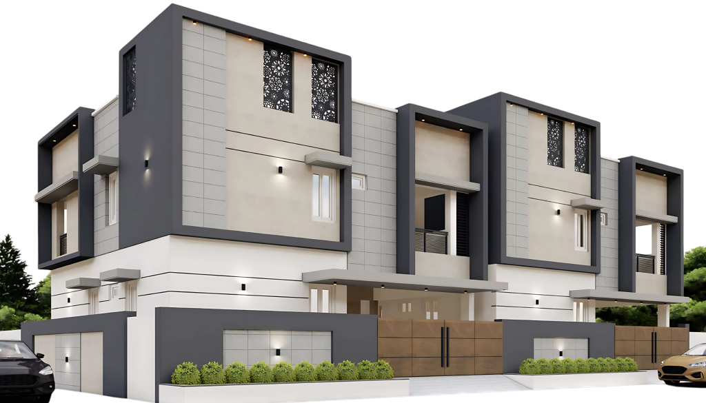 Discover Aether an exclusive corner-site development featuring two semi-furnished duplex villas, perfectly located at the intersection of 60-feet and 30-feet roads. Nestled in Uma Maheshwari Nagar, Cheran Ma Nagar, this project offers the perfect balance of prime connectivity and peaceful living just 650 meters from Vilankurichi Main Road, and within a 5 km radius of Coimbatore’s major hubs: Tidel Park (CMC), Avinashi Road, Kalapatti, and Saravanampatti.