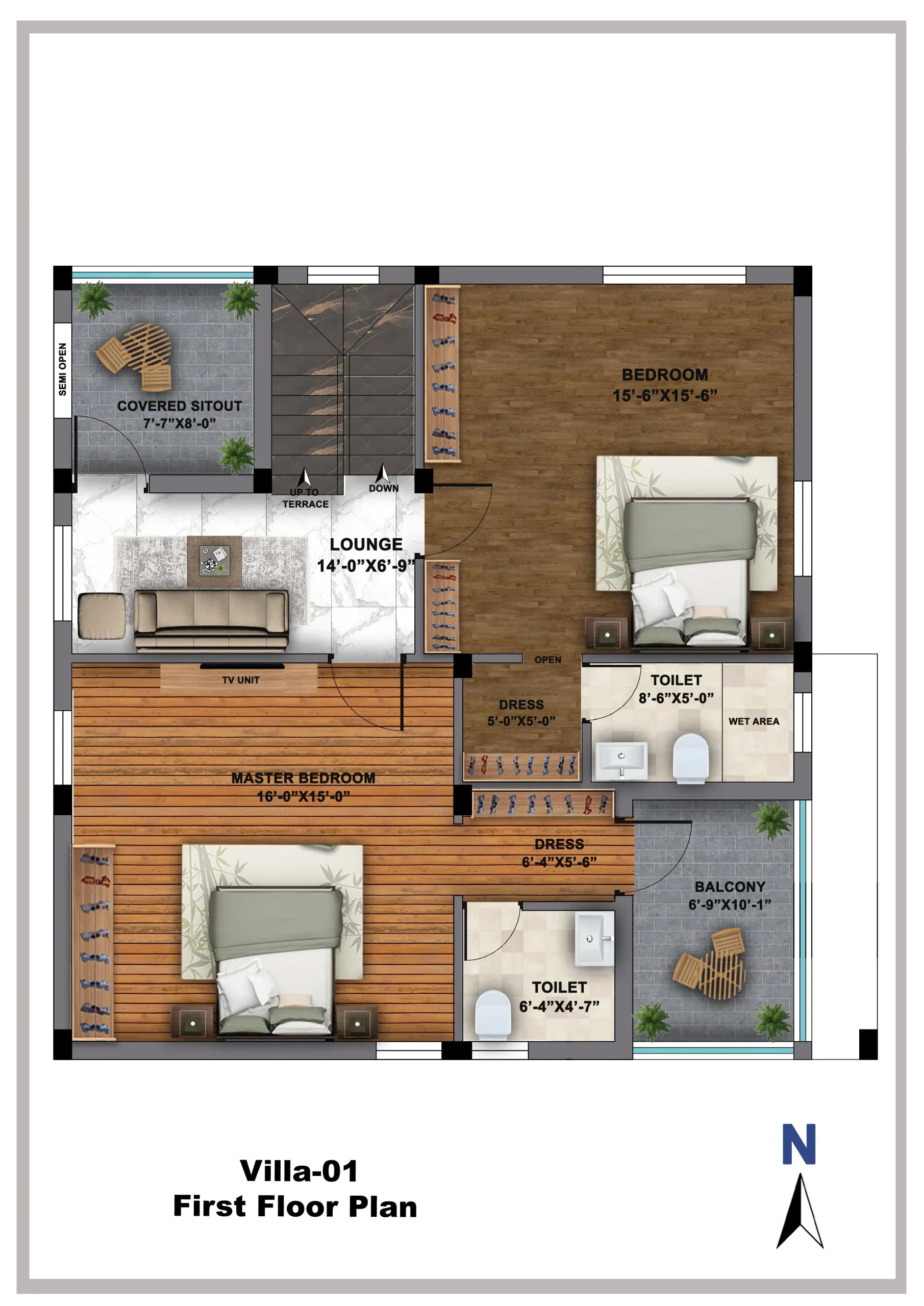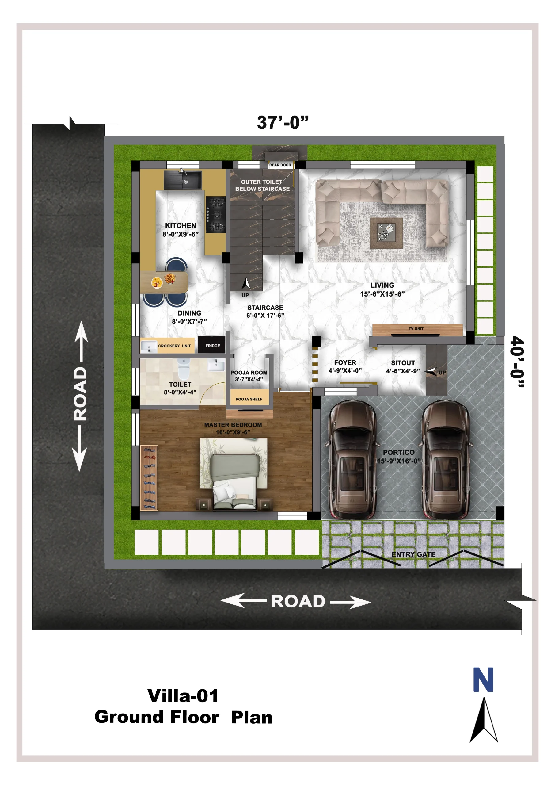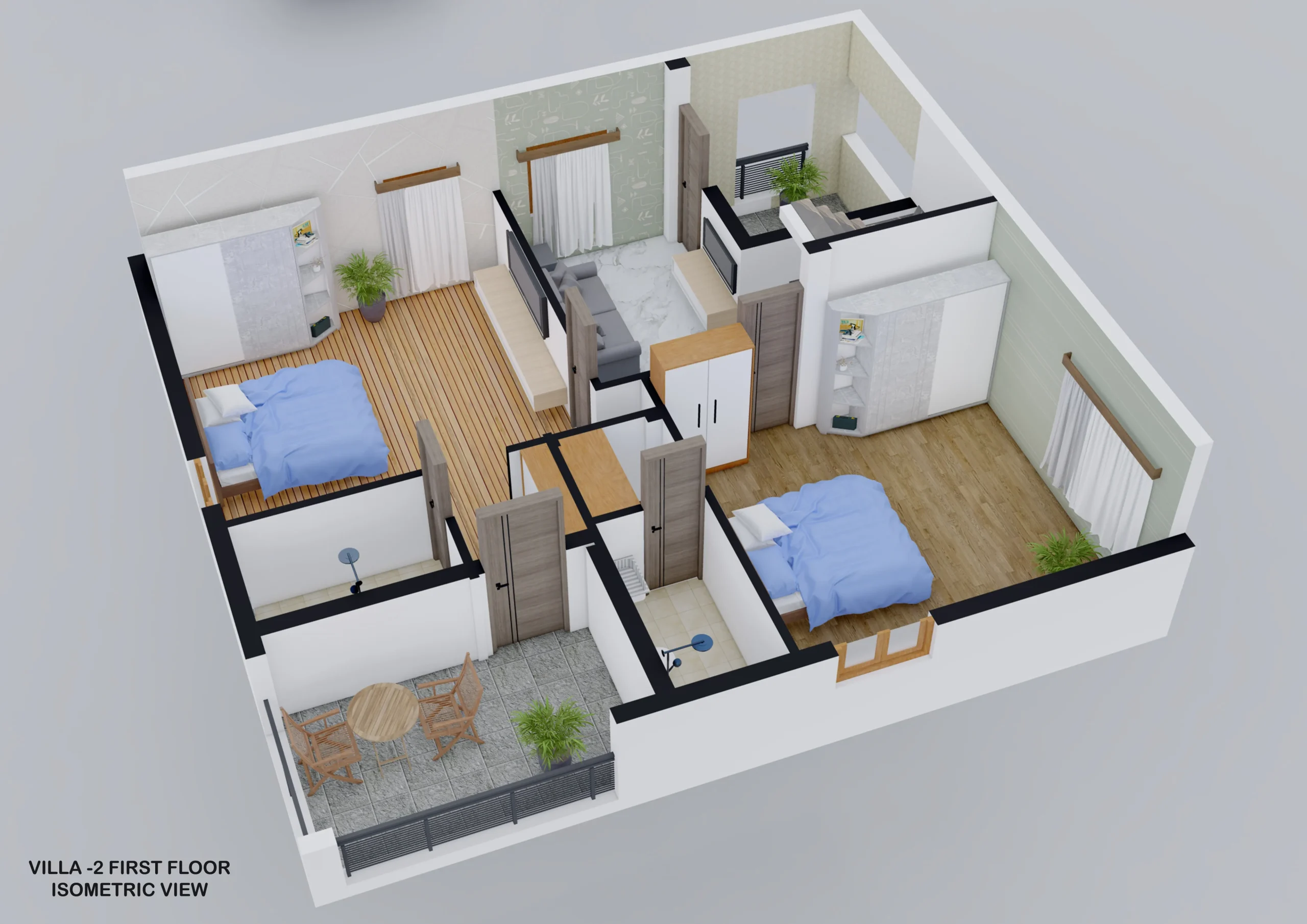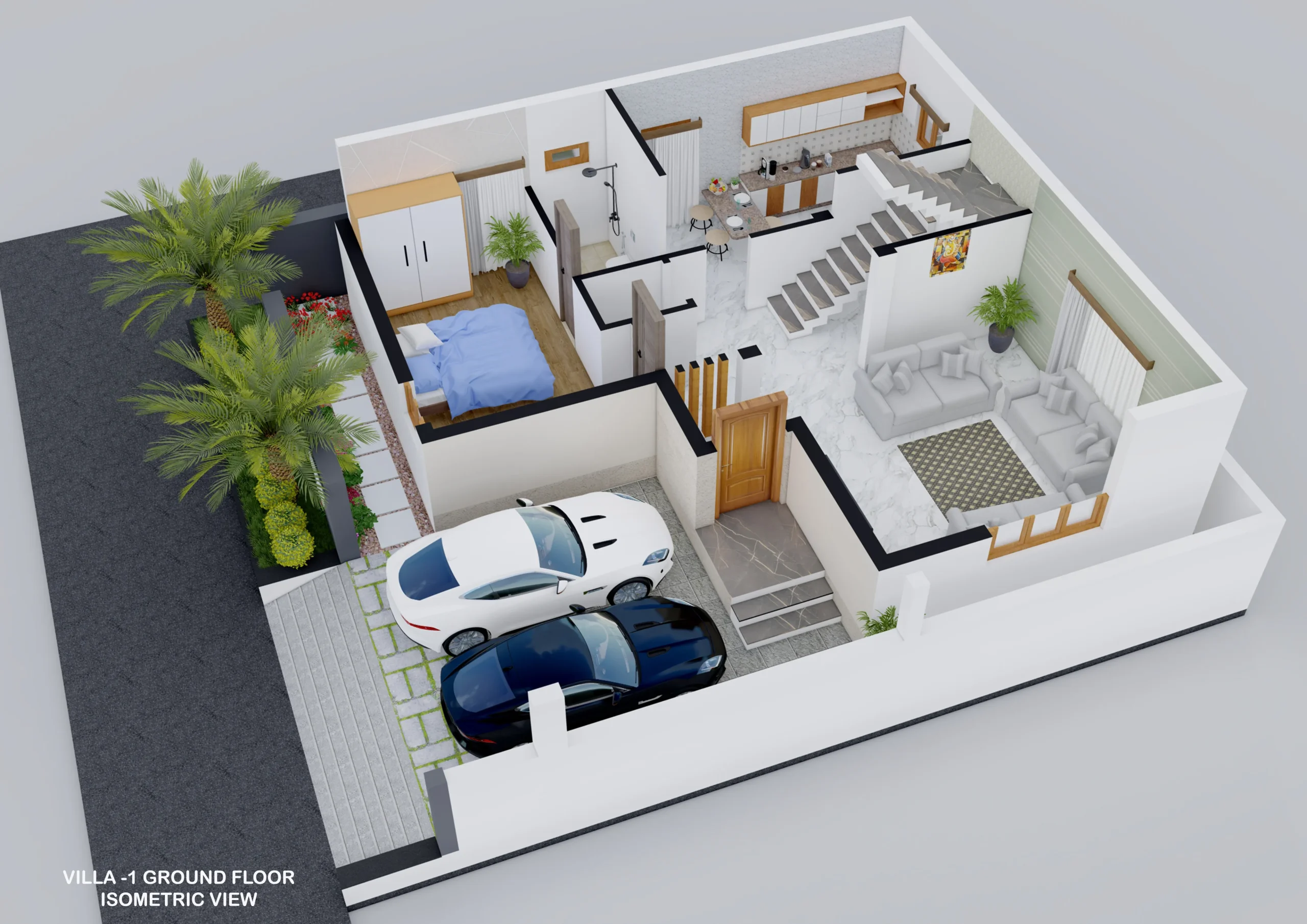 Each villa includes dedicated parking for two luxury vehicles, ensuring convenience and security.